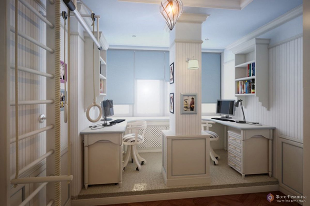 24. Интерьер прямоугольной комнаты для подростка девочки