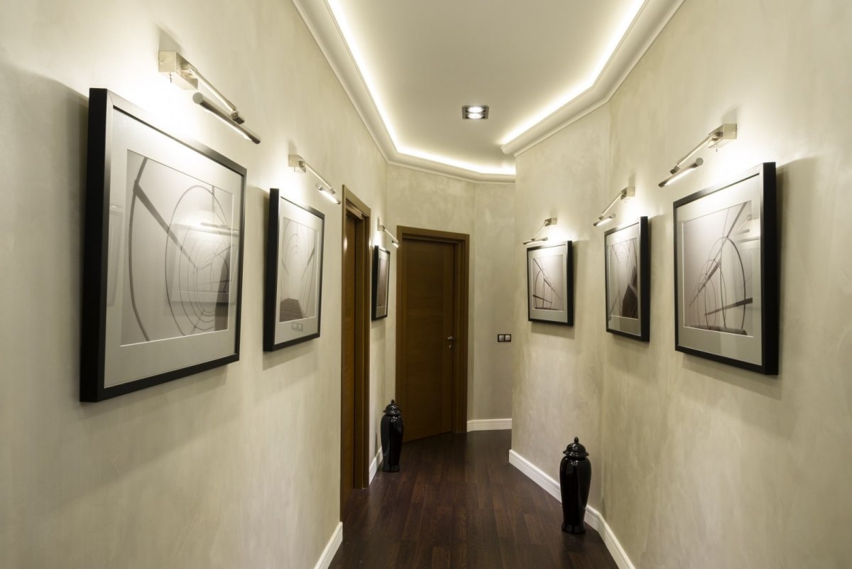 57. Потолки в калидореинтерьер с рельсывыми подтами фото