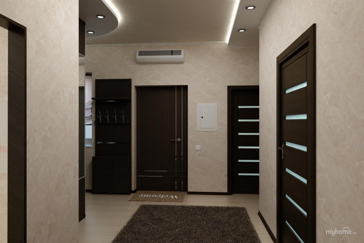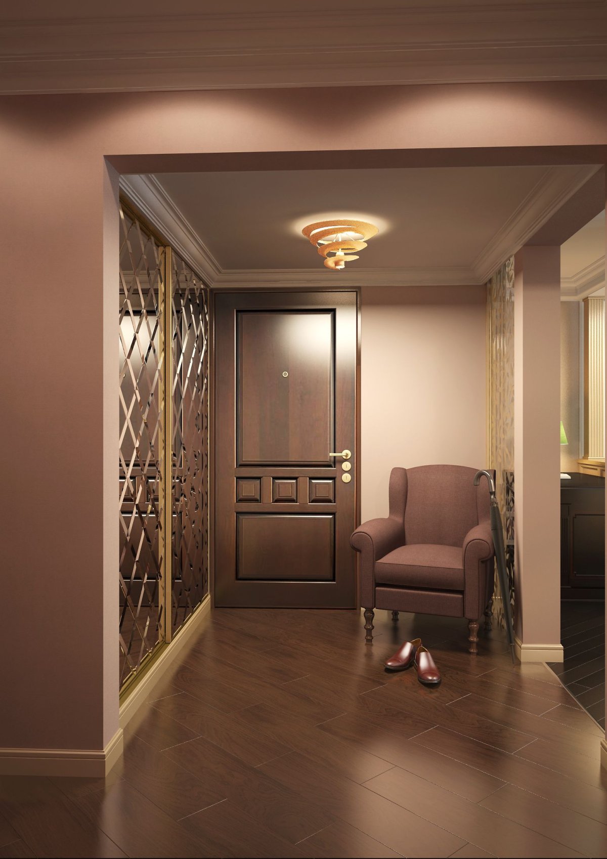 Коридор с дверями в комнаты - это узкая проходная зона в доме или квартире, которая обычно соединяет различные помещения. Он может быть длинным и просторным или узким и функциональным. В коридоре расположены двери, ведущие в различные комнаты, такие как спальня, ванная комната, гостиная и т. д. Коридор также служит местом для хранения вешалок, обувницы или шкафов для хранения предметов первой необходимости. Он может быть оформлен в различных стилях и использовать различные материалы, чтобы создать уютную и функциональную атмосферу.