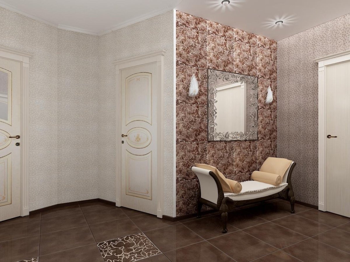 21. Обои с вензелями в интерьере прихожей