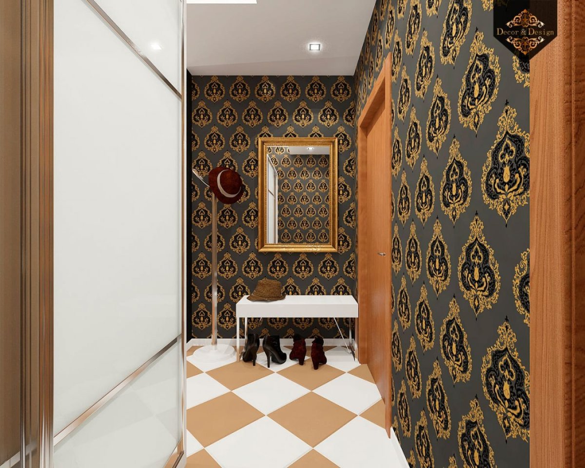43. Золотые обои в интерьере прихожей