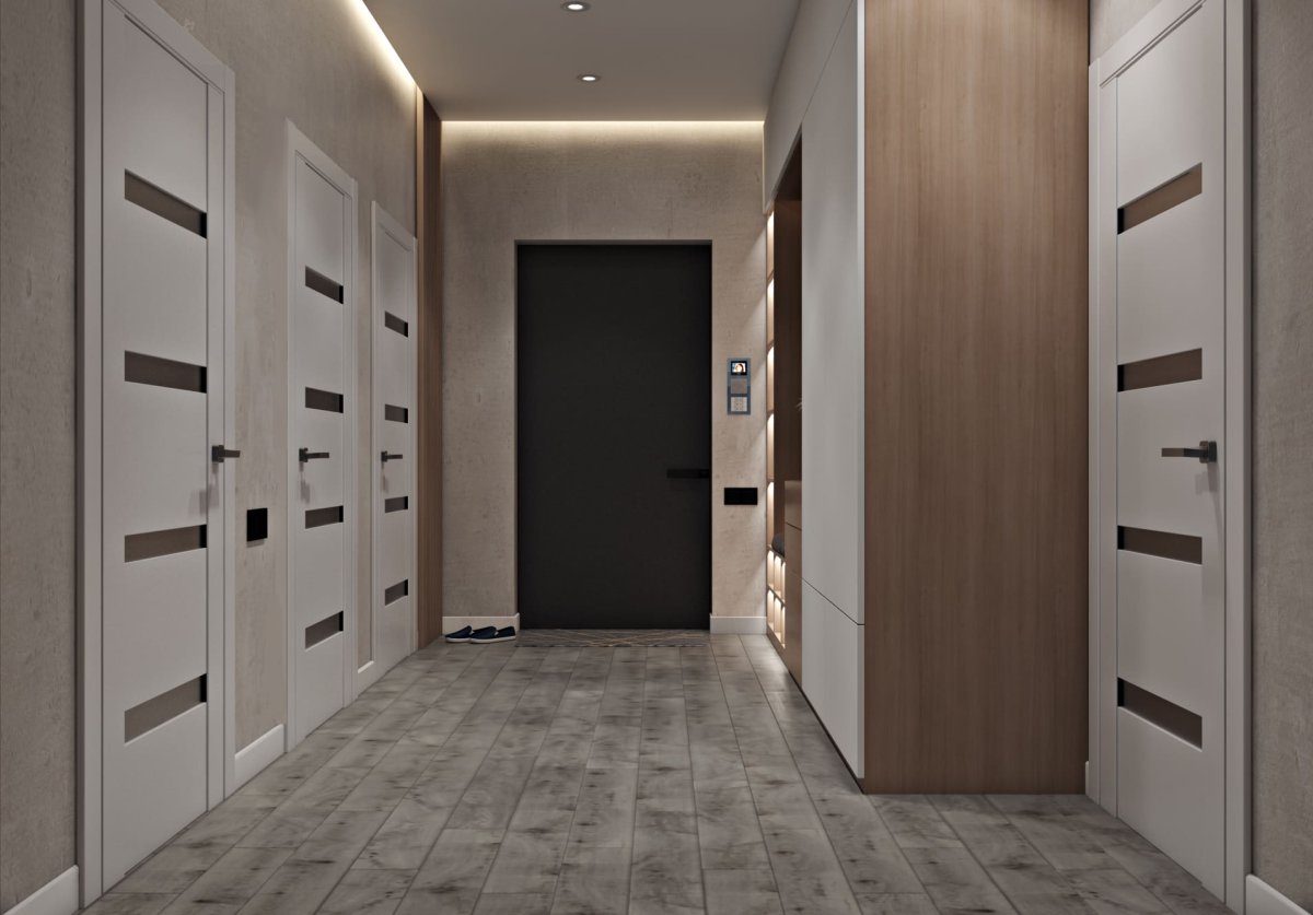Коридор со светлыми дверями - это пространство, которое создает ощущение простора и света. Светлые двери визуально расширяют пространство и добавляют ему элегантности. Коридор с такими дверями становится более приятным и гостеприимным местом.