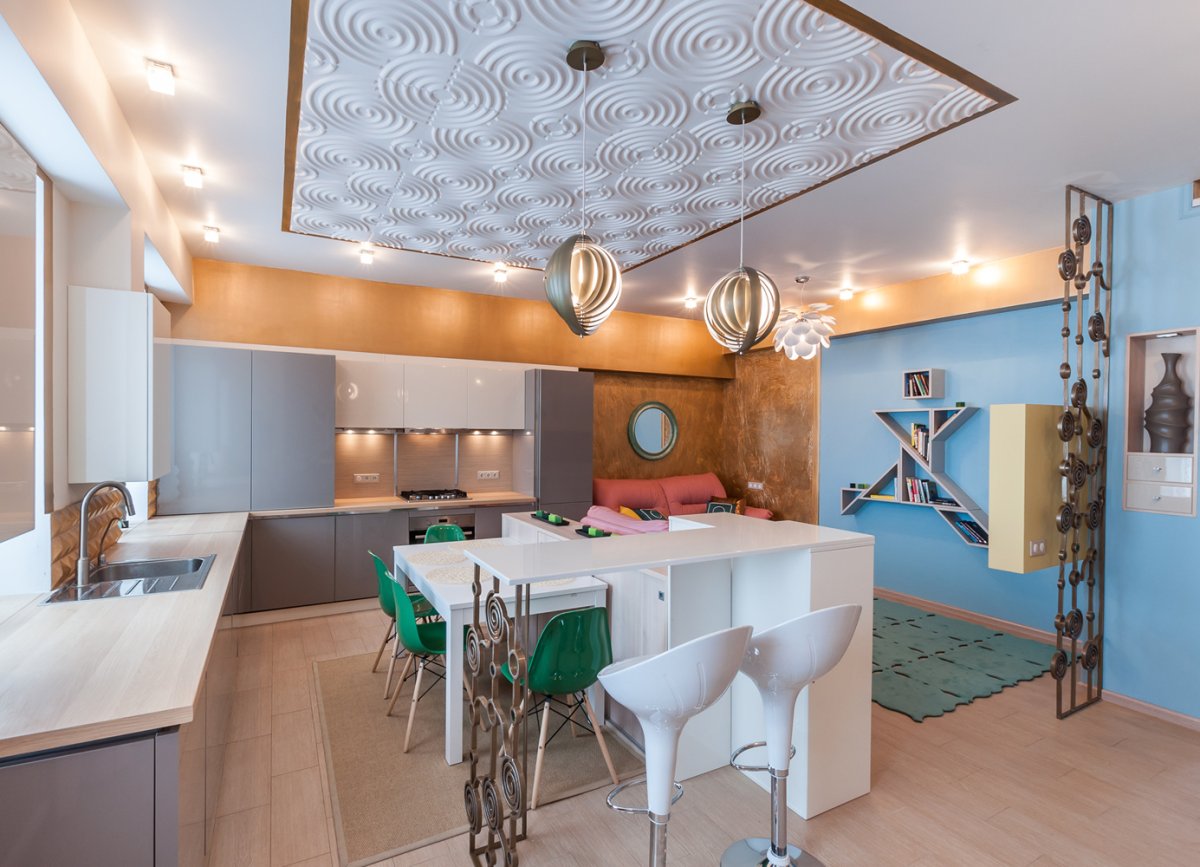 48. Потолок гостиная кухня арт деко