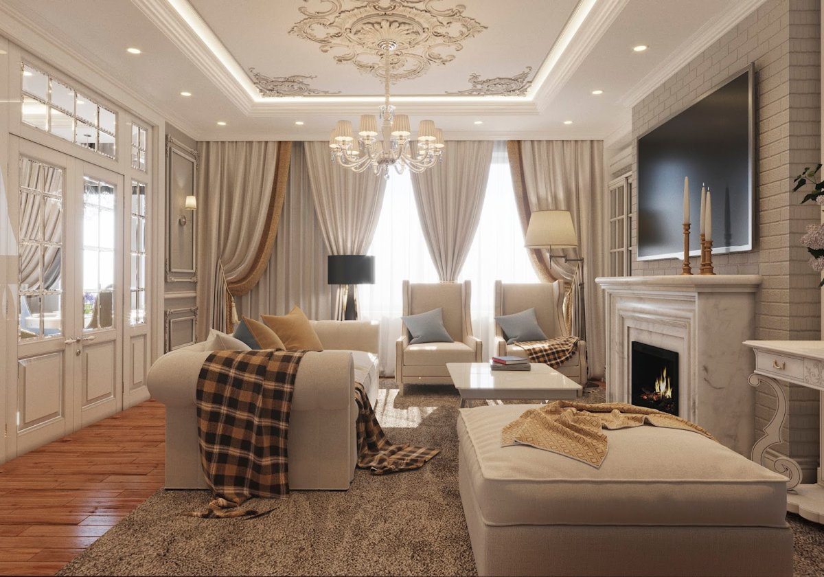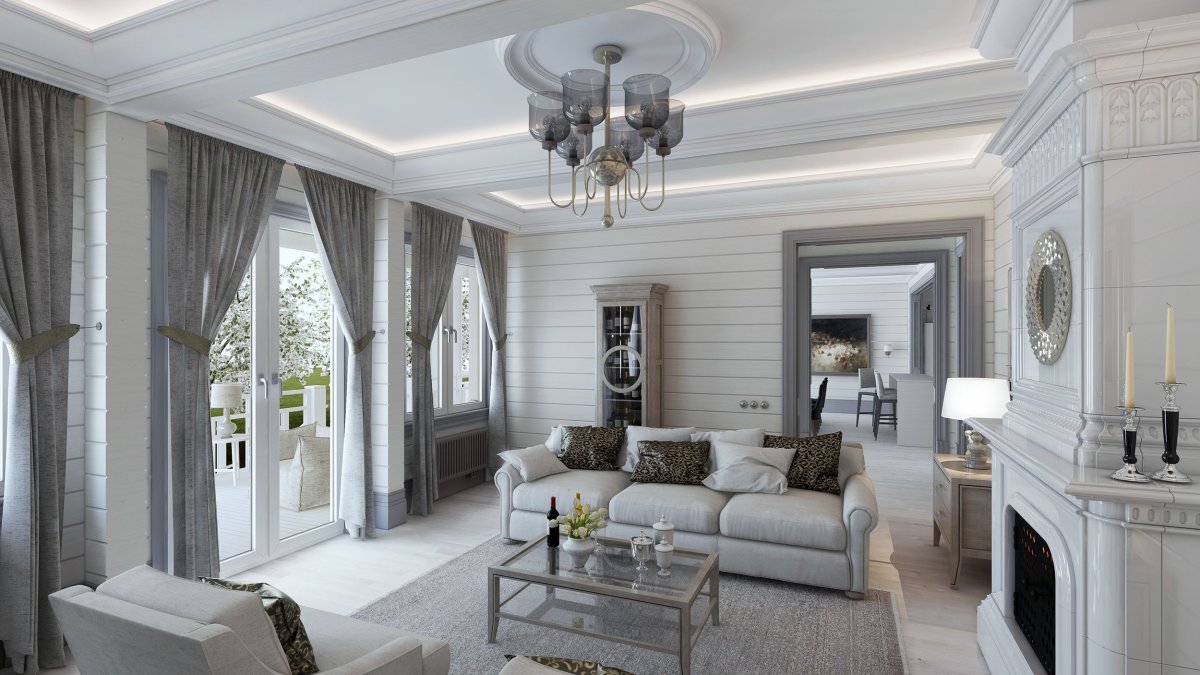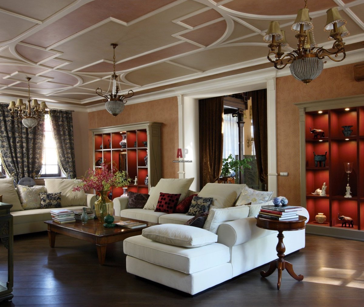 39. Линкруста в интерьере гостиной в стиле Неоклассика