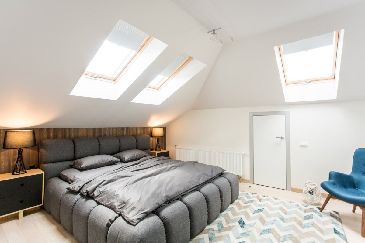 31. Спальня с мансардными окнами