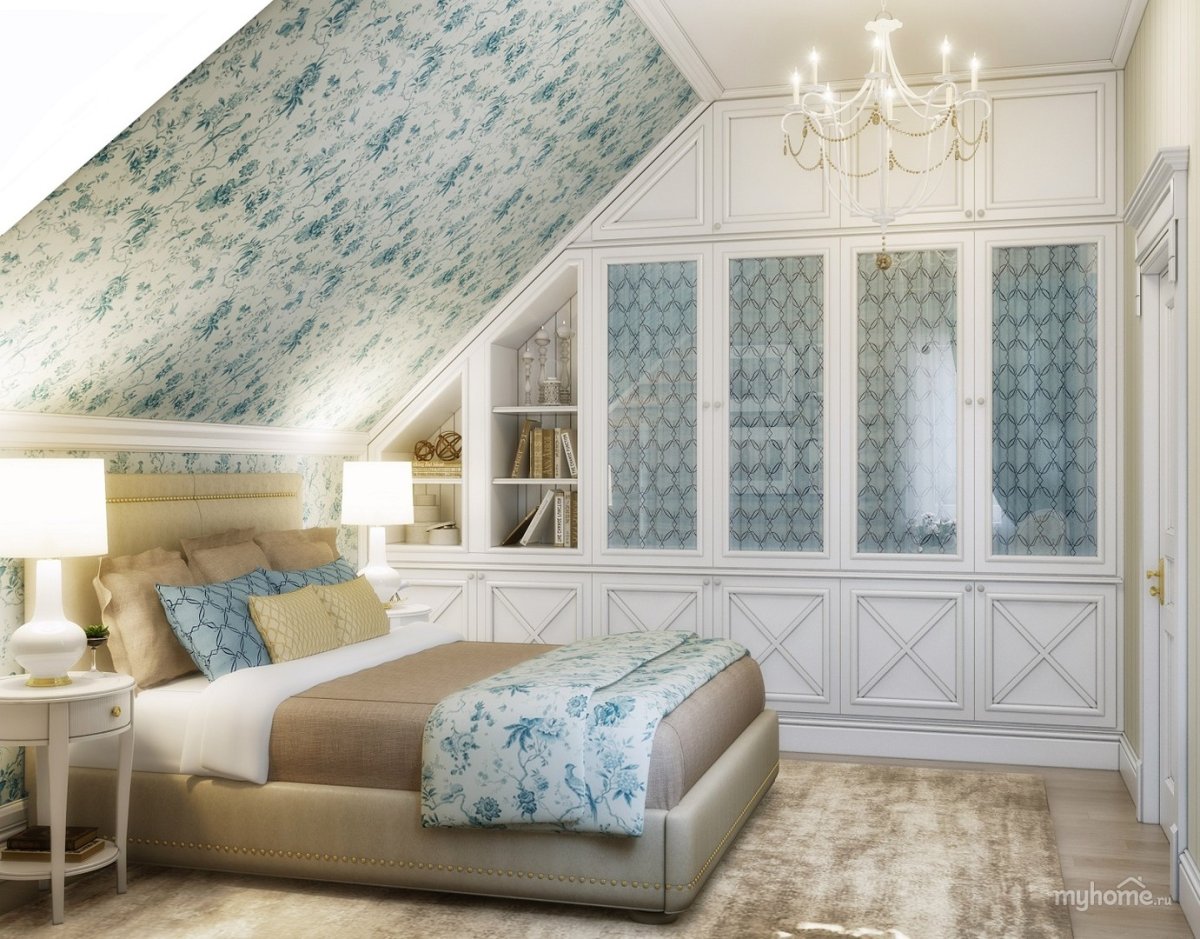 49. Спальня с мансардным потолком