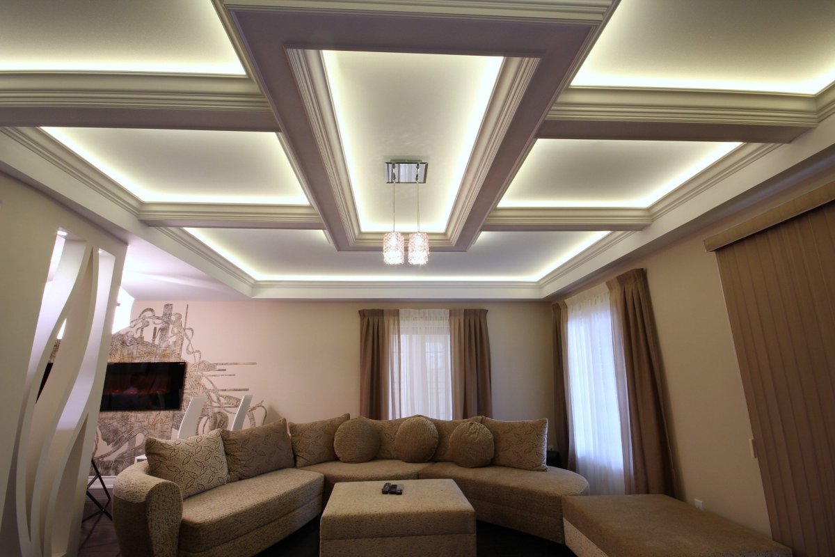 Призыв к просмотру фото ниже: современные дизайнерские решения для потолков из гипсокартона