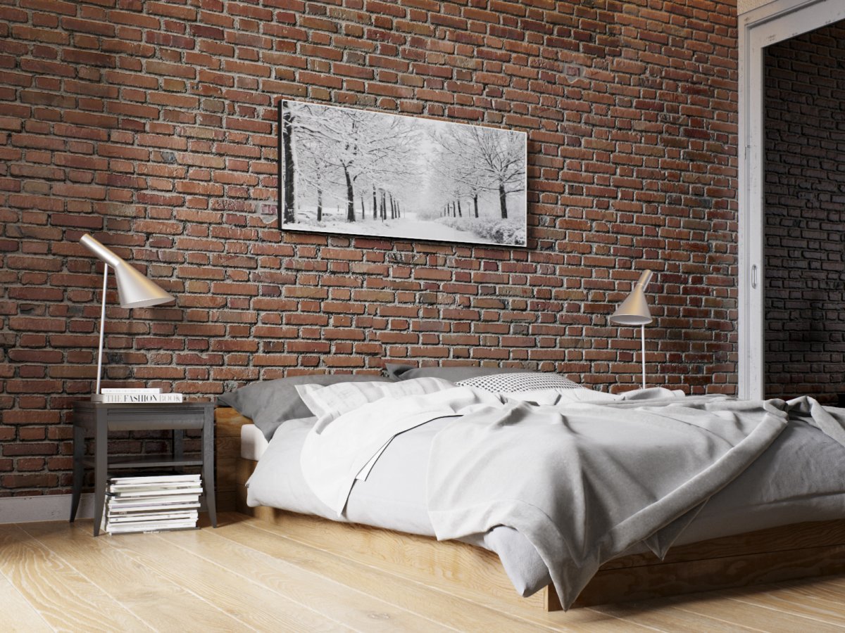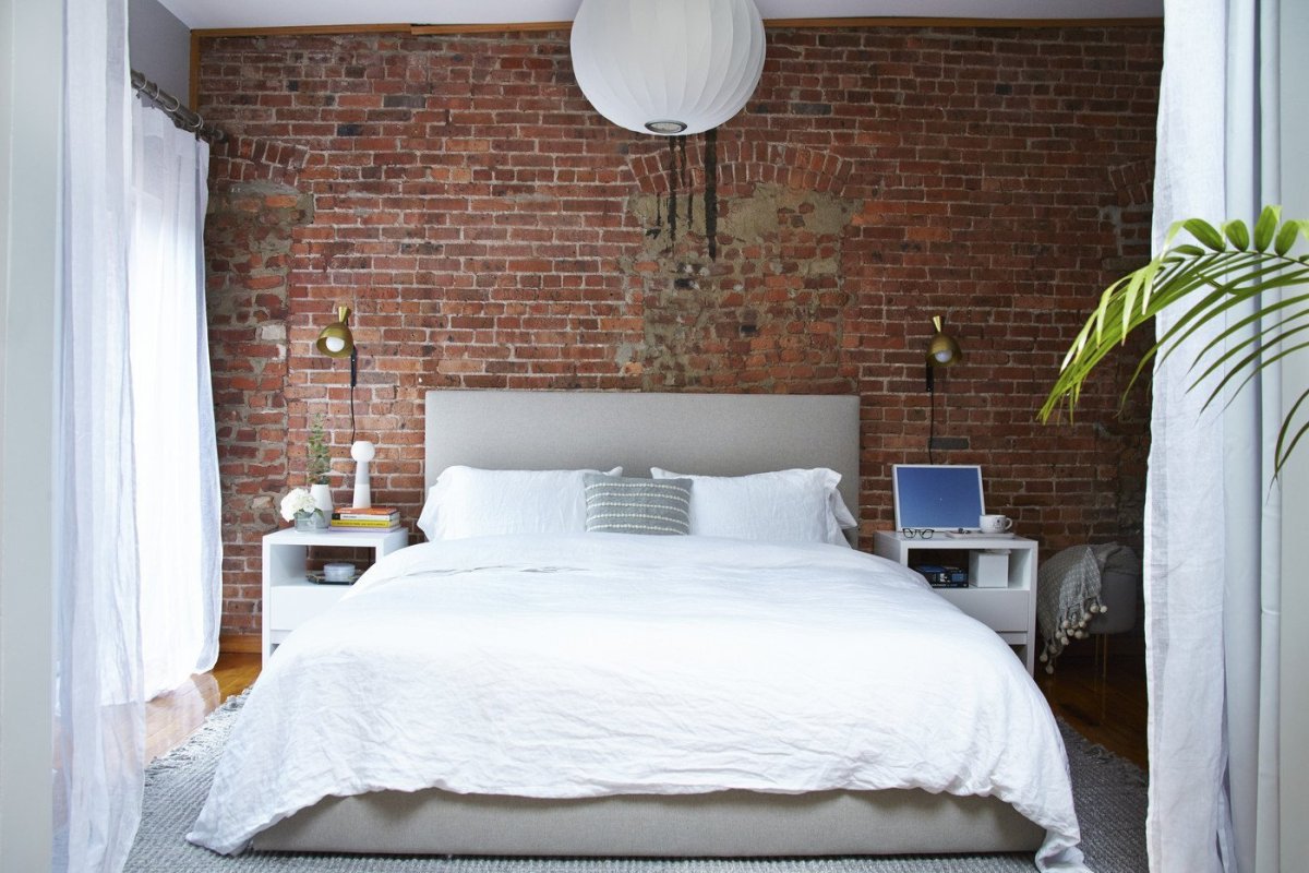 38. Кирпичная стена в спальне