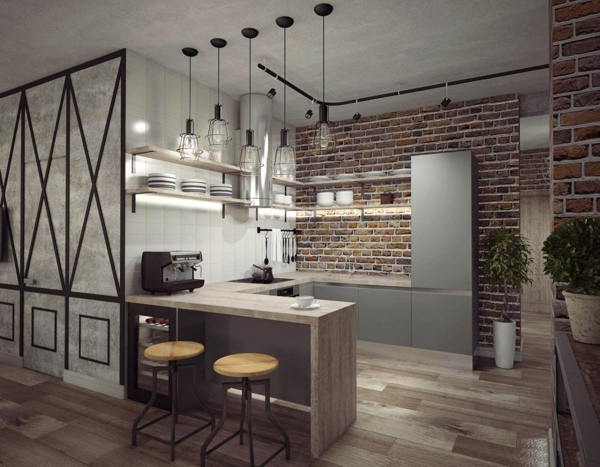 43. Кухня бар в стиле лофт
