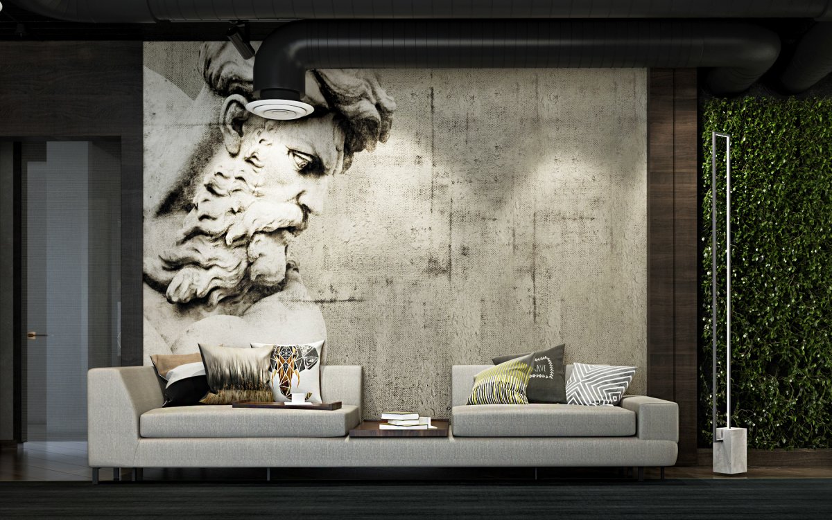 63. Роспись стены в гостиной лофт