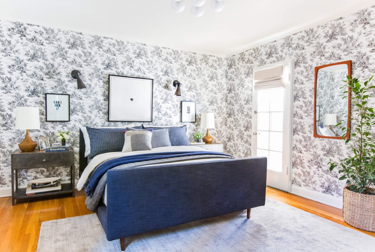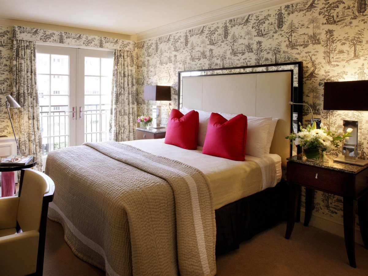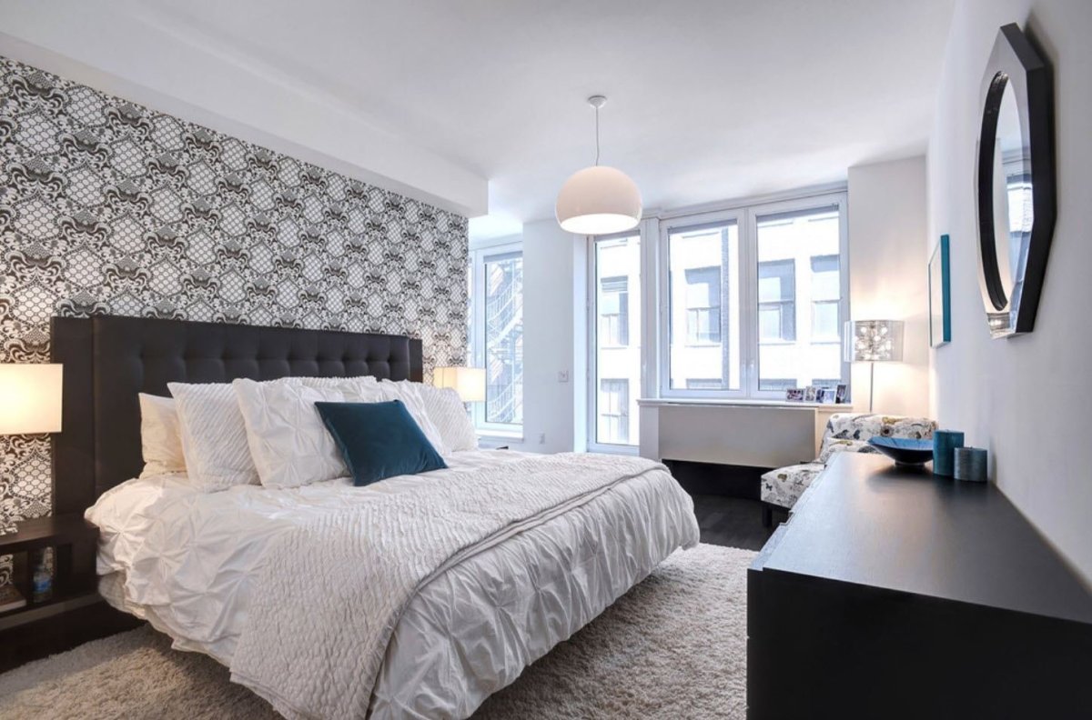 51. Белые обои в интерьере спальни