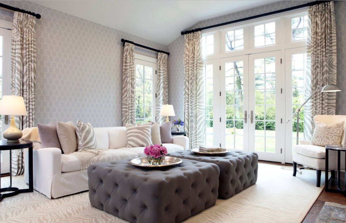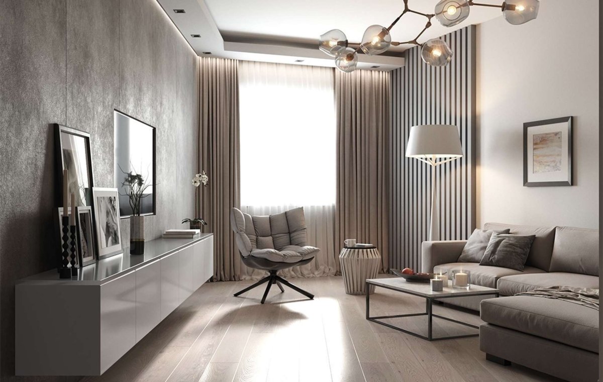 Фото: Обои серого цвета в интерьере гостиной