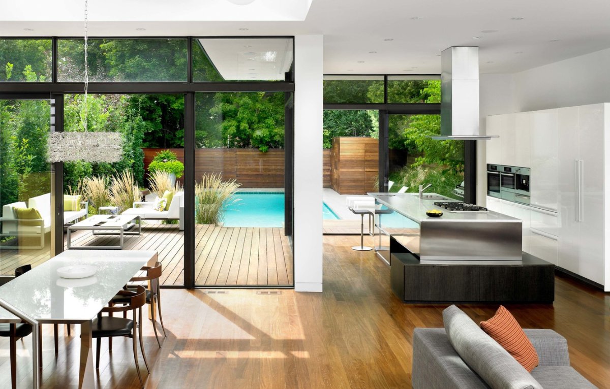 18. Кухня гостиная с панорамными окнами