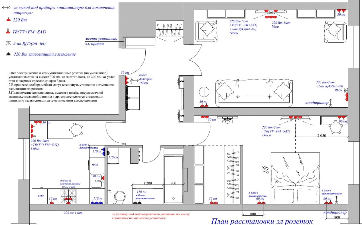 53. Расположение розеток в спальне в зоне кровати схема фото