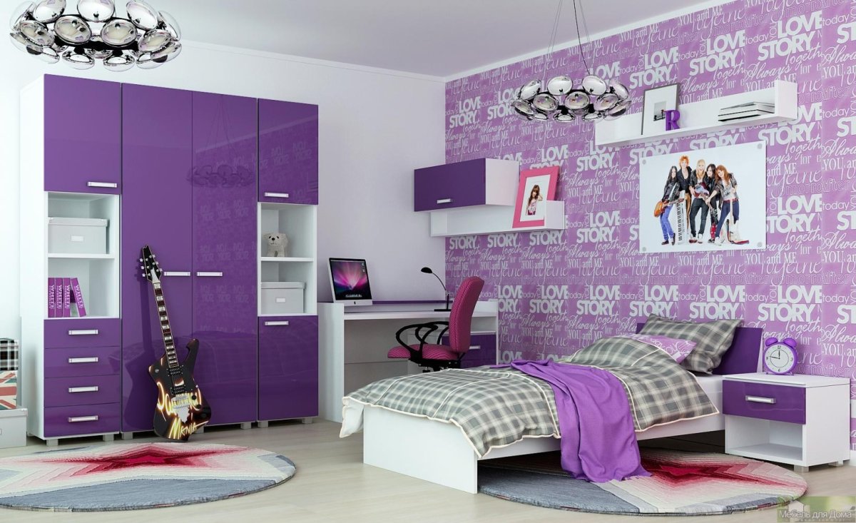 7. Интерьер комнаты для подростка фиолетового цвета