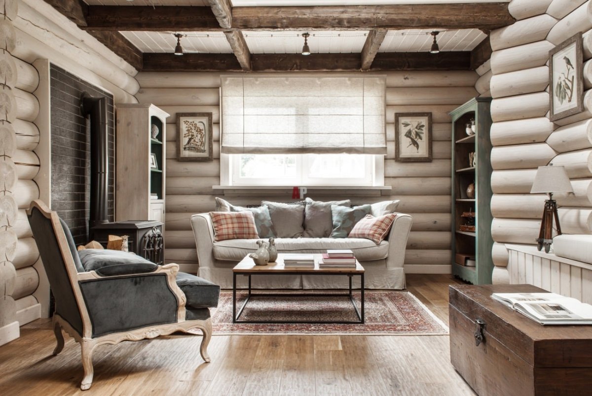 37. Интерьер деревянного дома из бревна в стиле Прованс