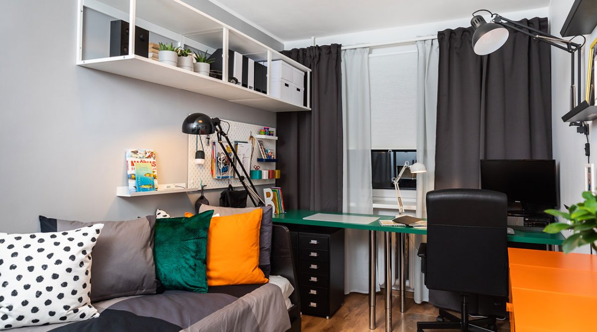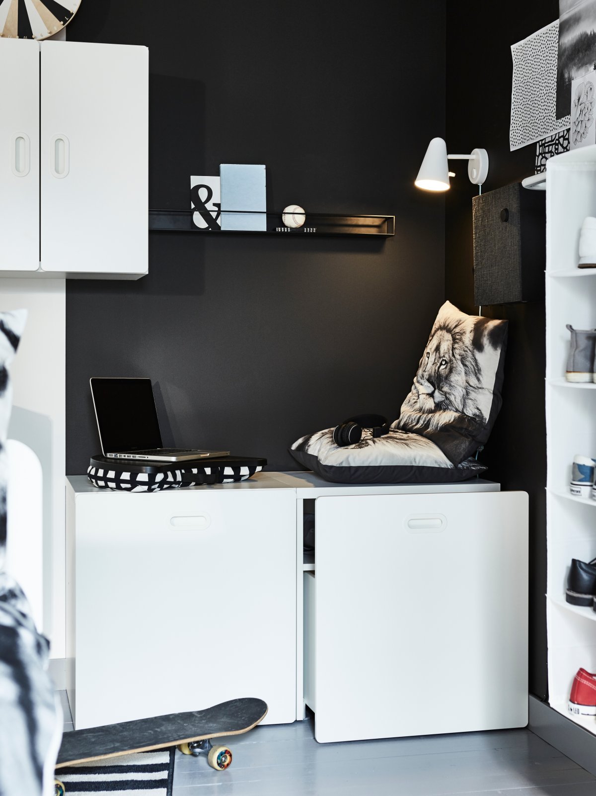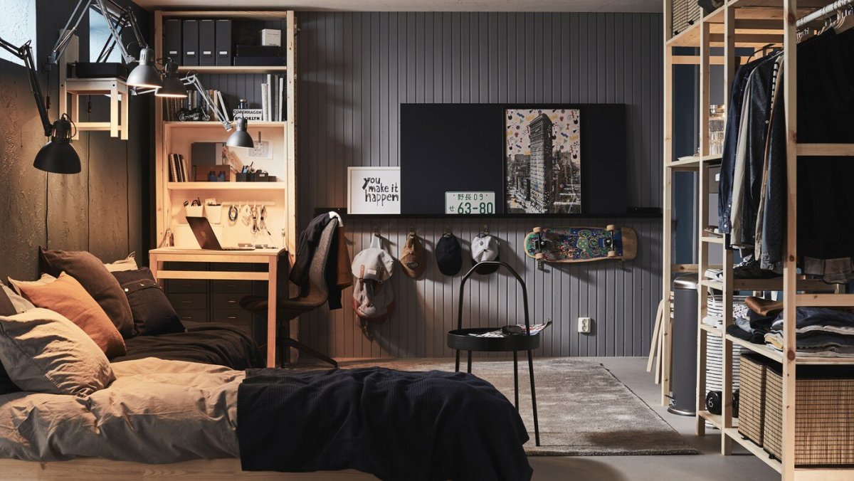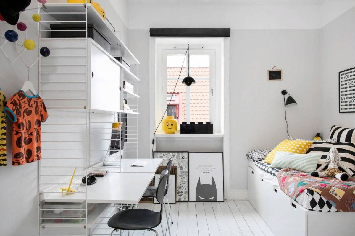 49. Стеллажи икеа в интерьере подростковой комнаты