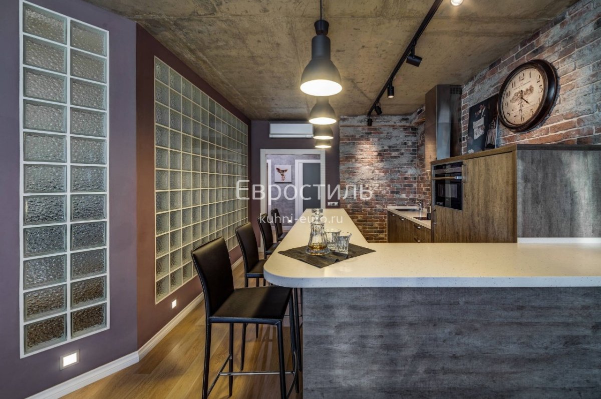 57. Стеклоблоки на кухне лофт