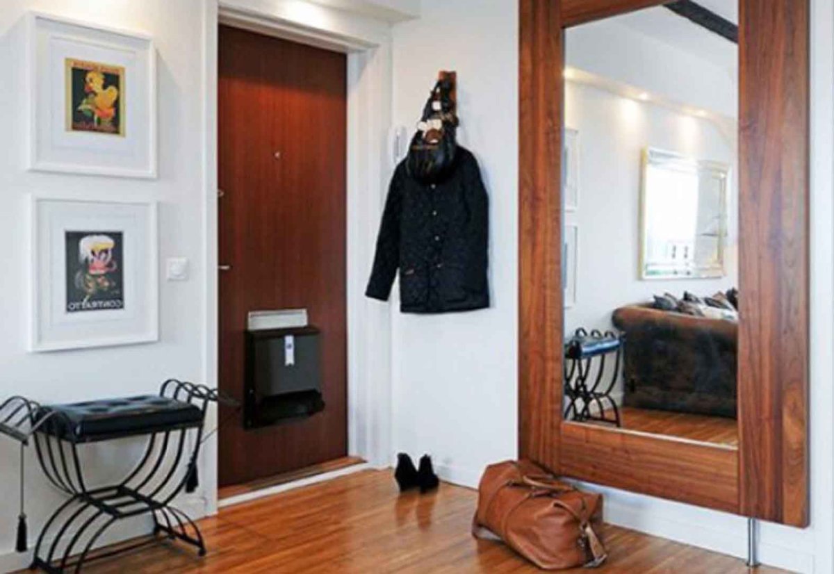 22. Входная дверь с зеркалом в интерьере прихожей