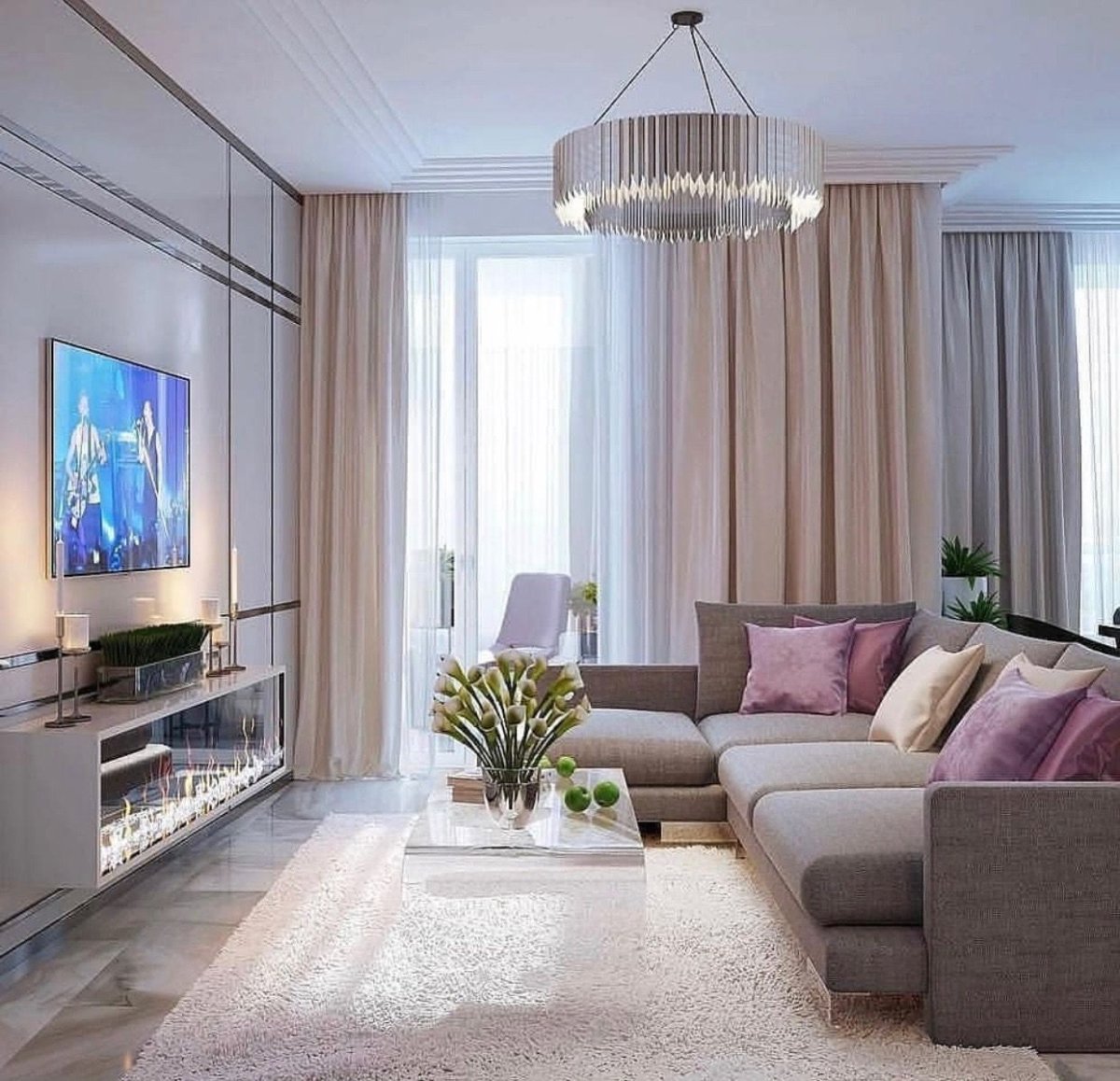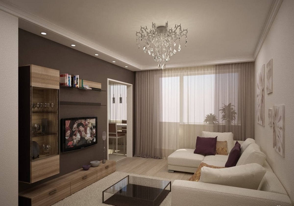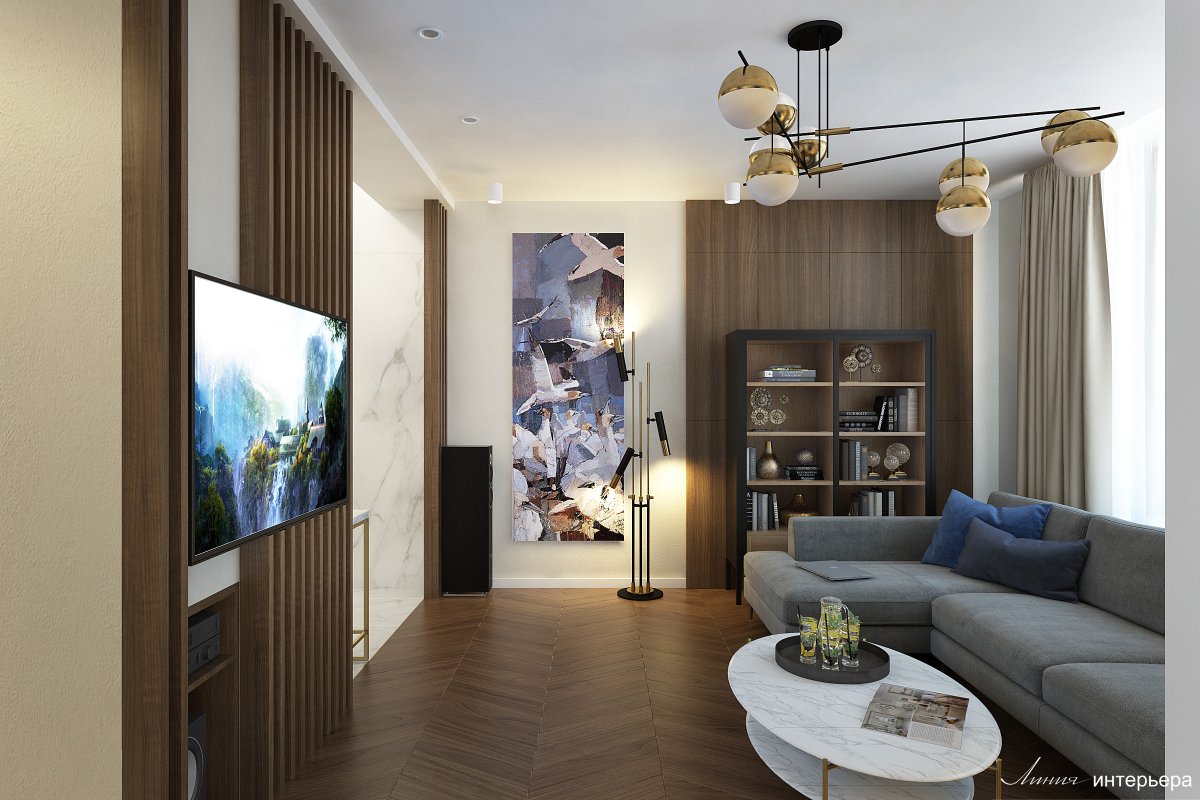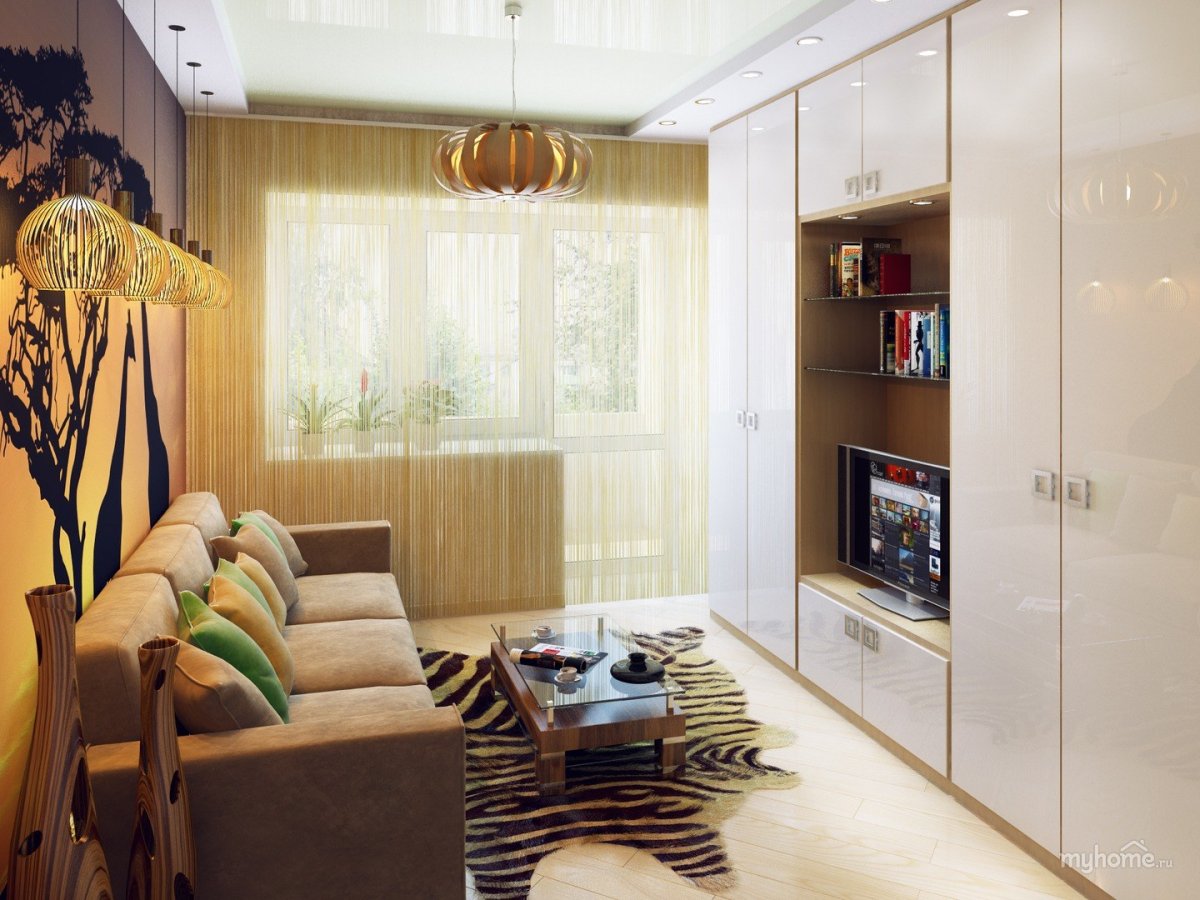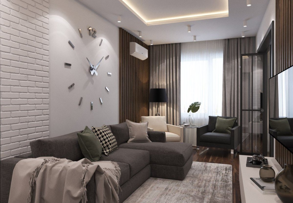12. Интерьер простой современной гостиной в квартире 5 на 3