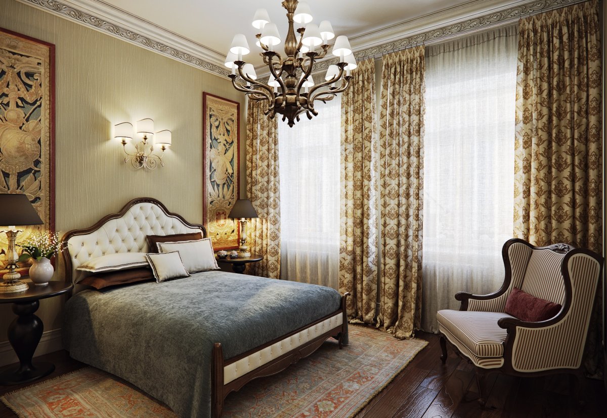34. Спальня 28 кв м в стиле классика