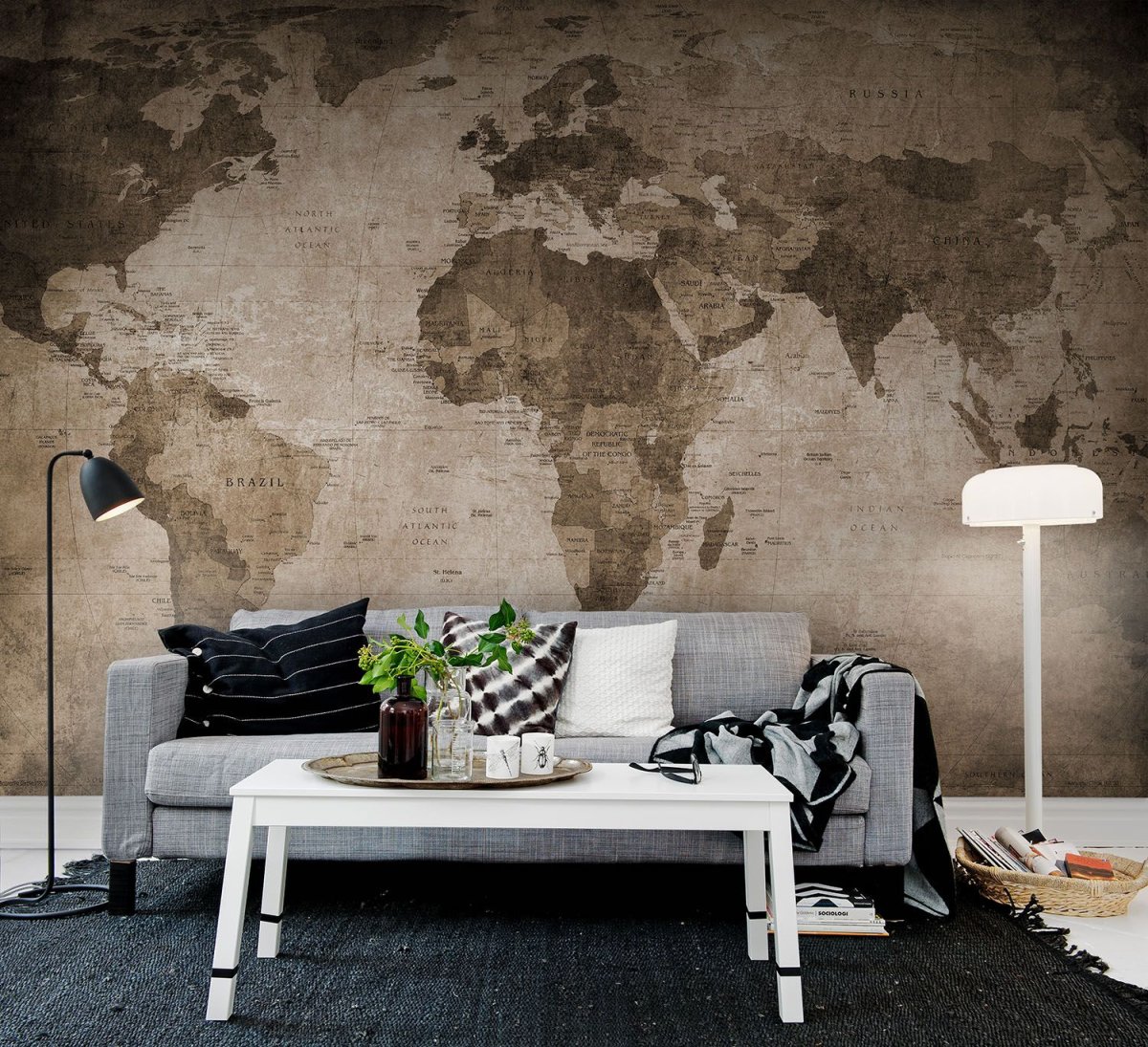 49. Декоративная штукатурка карта мира в интерьере гостиной