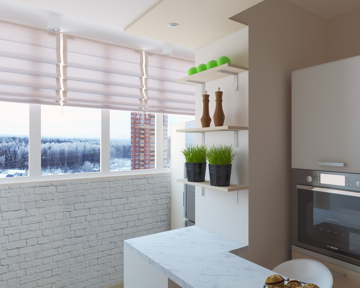 14. Интерьер кухни с балконом