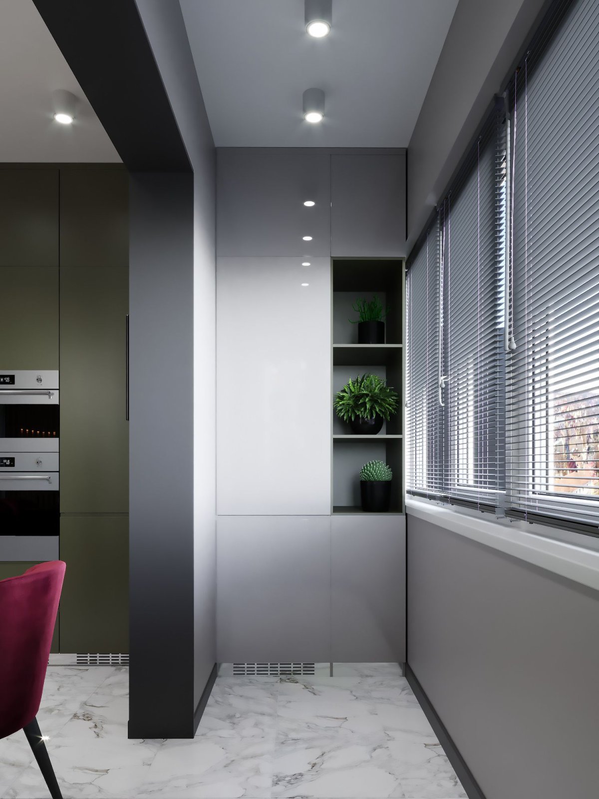 40. Дизайн маленькой узкой кухни с балконом
