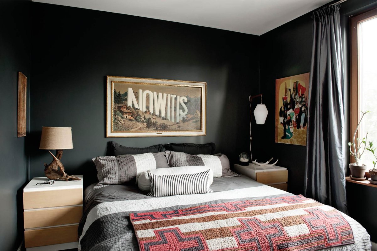 58. Черная стена в спальне