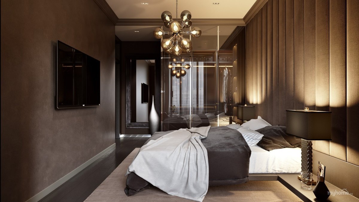 46. Спальня для мужчины в коричневом цвете