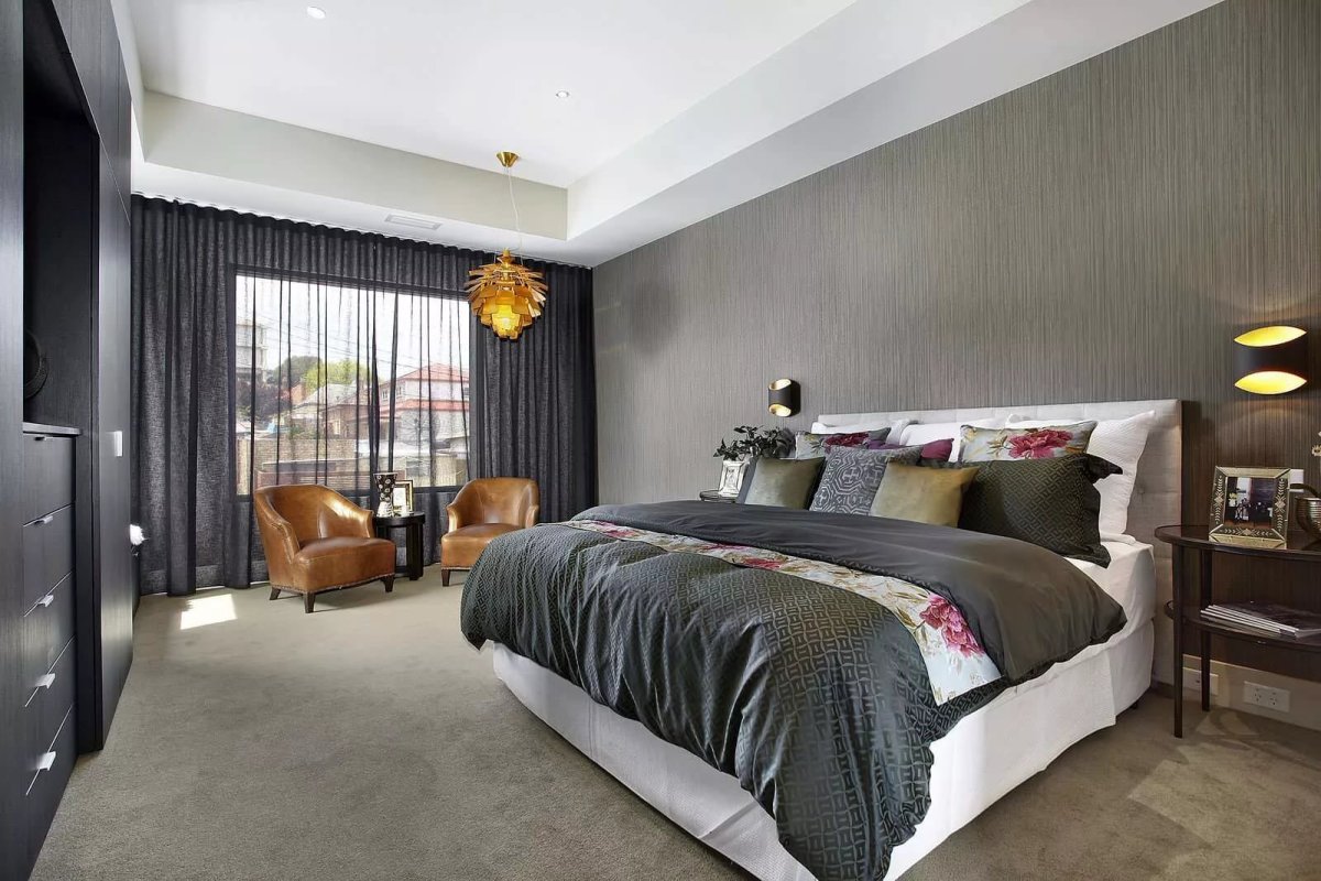 28. Тёмные обои в спальне