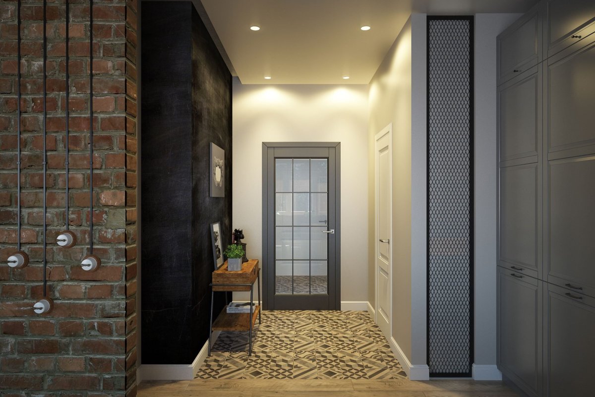 44. Узкий коридор в стиле лофт
