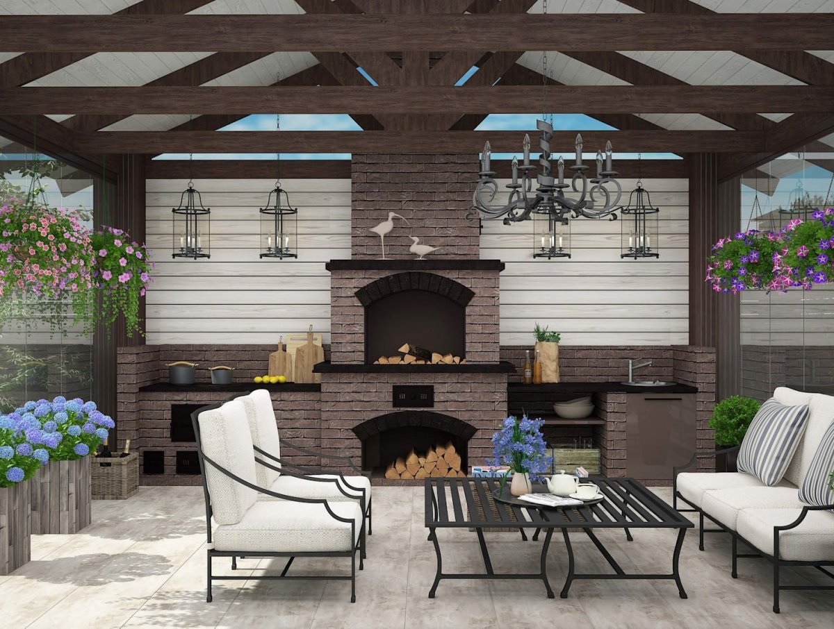 33. Терраса с камином-барбекю