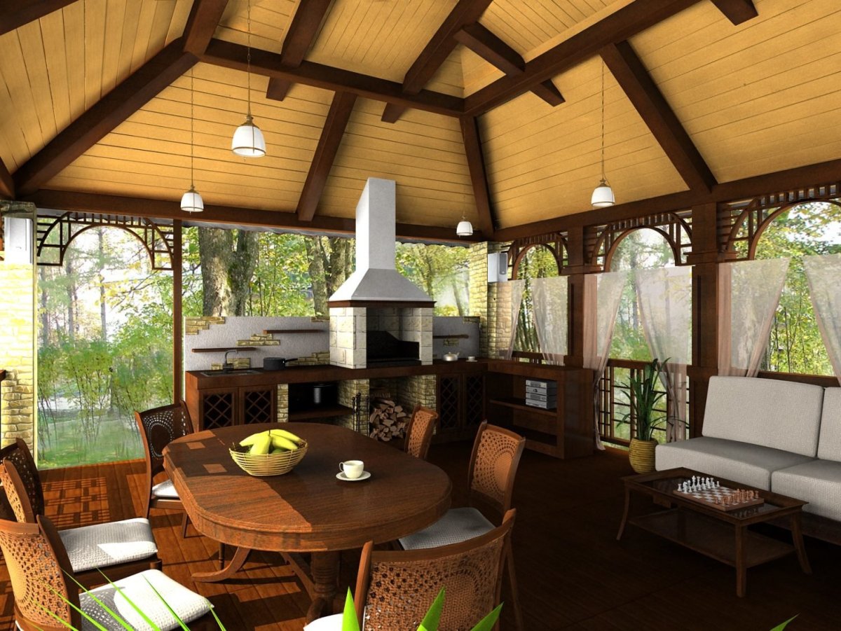 27. Интерьер беседки с барбекю