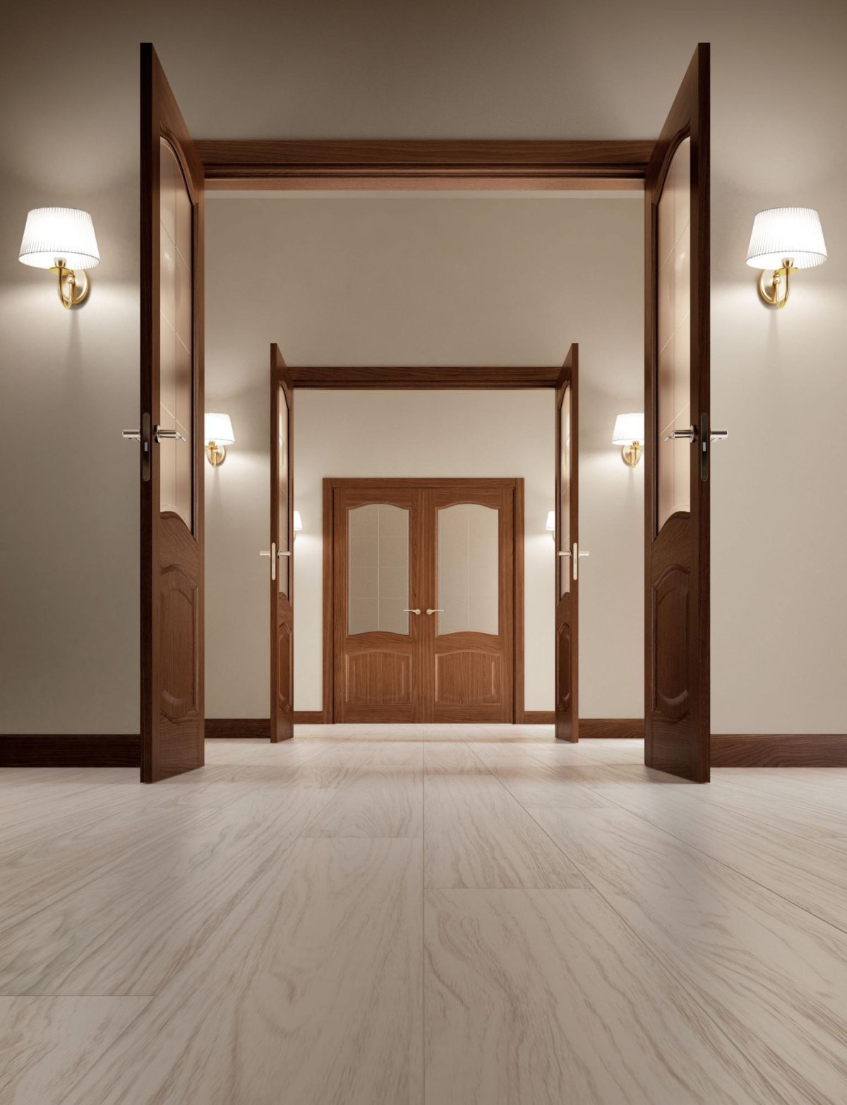 14. Фото зала с дверями цвета итальянский орех в интерьере