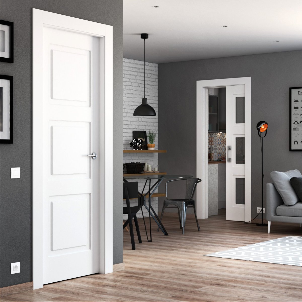 27. Белые двери в сером интерьере