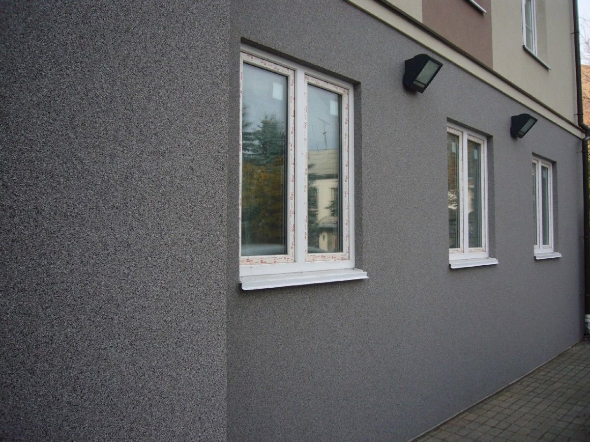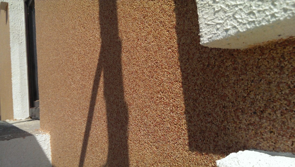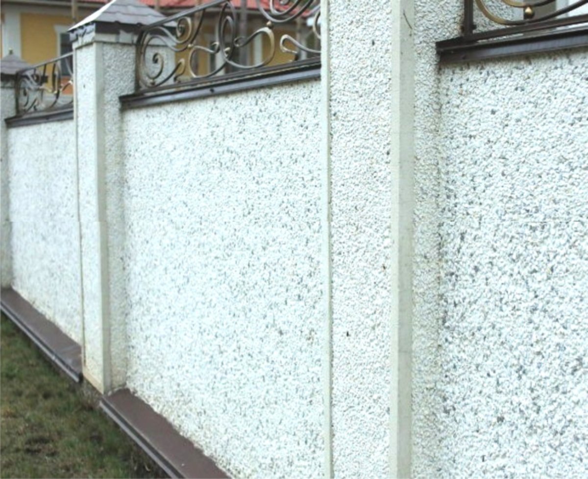 Фото: Штукатурка цоколя смесью с мраморной крошкой