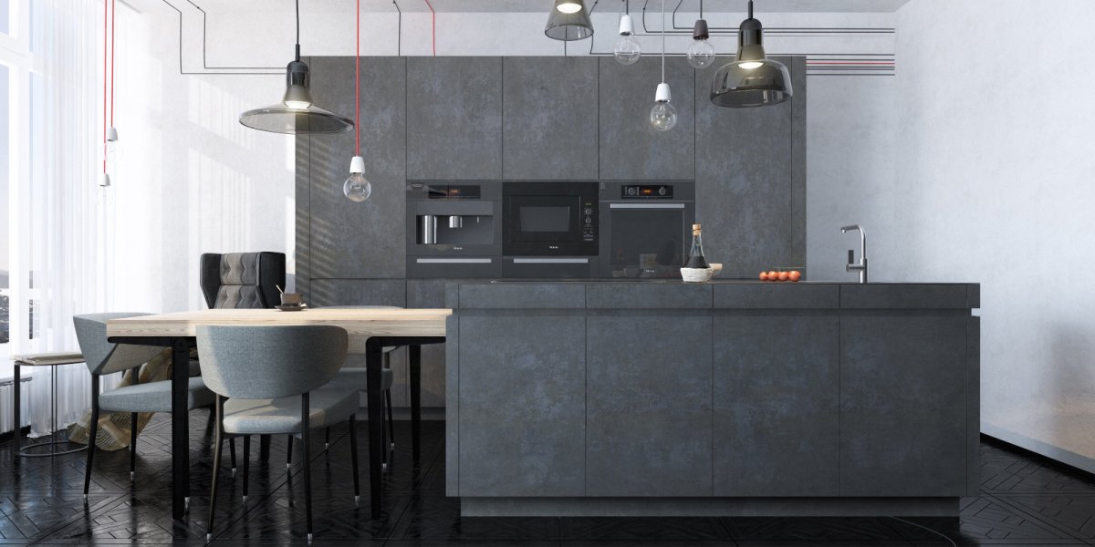 14. Кухни в стиле лофт серый бетон