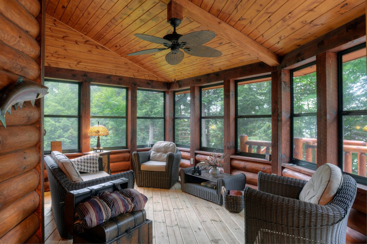 51. Застекленная веранда из бревна