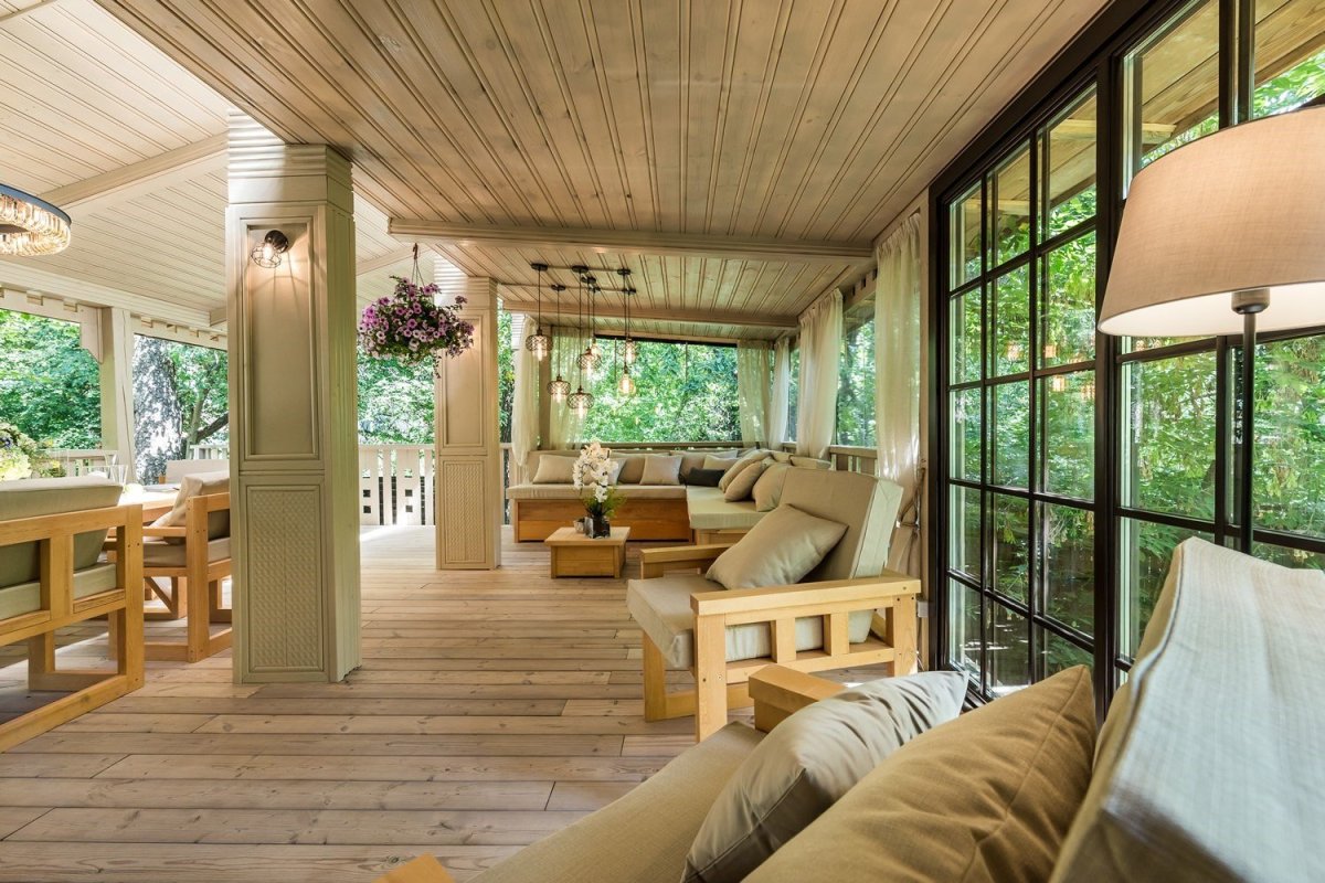 30. Интерьер веранды в загородном доме