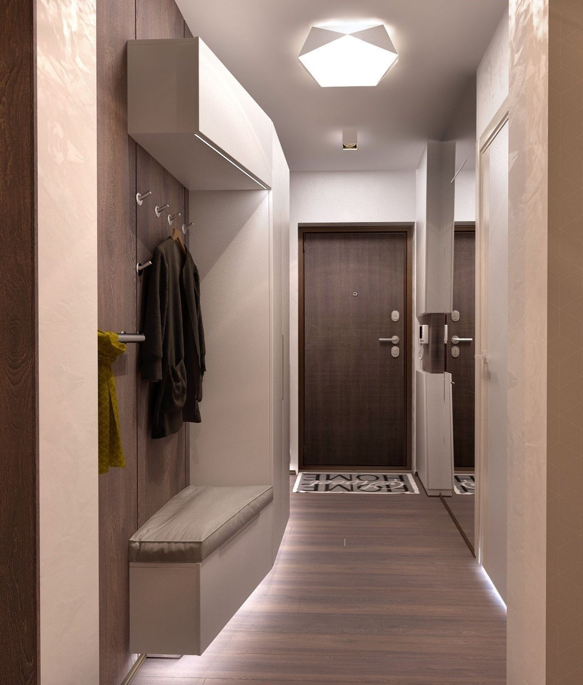51. Дизайн узкой прихожей в хрущевке с навесными шкафами