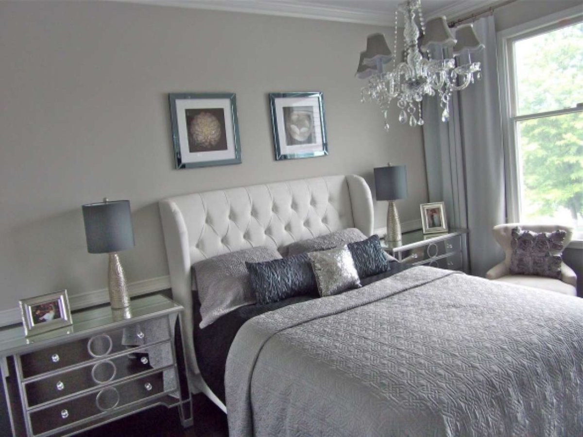 38. Серебристо белая спальня