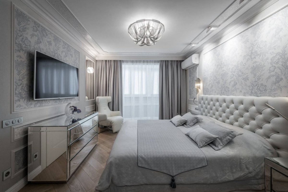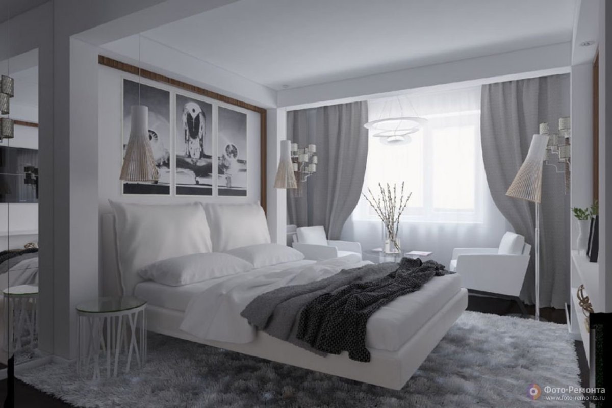 44. Спальня в серо белых тонах