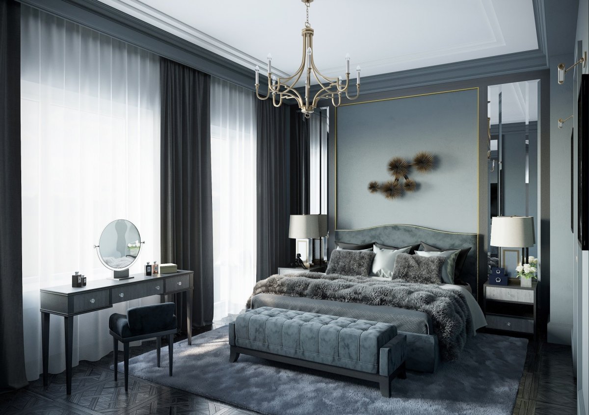 9. Интерьер серой спальни