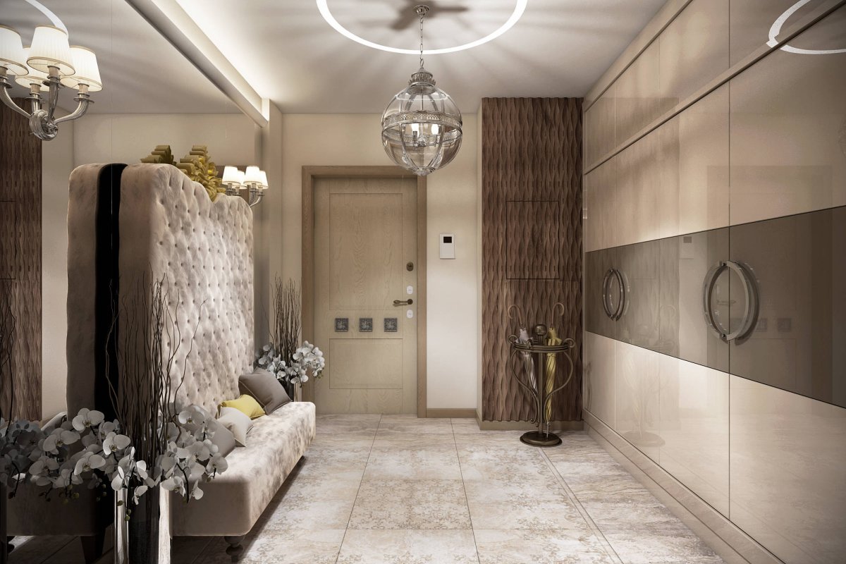 57. Дизайнерская прихожая в современном стиле в светлых тонах
