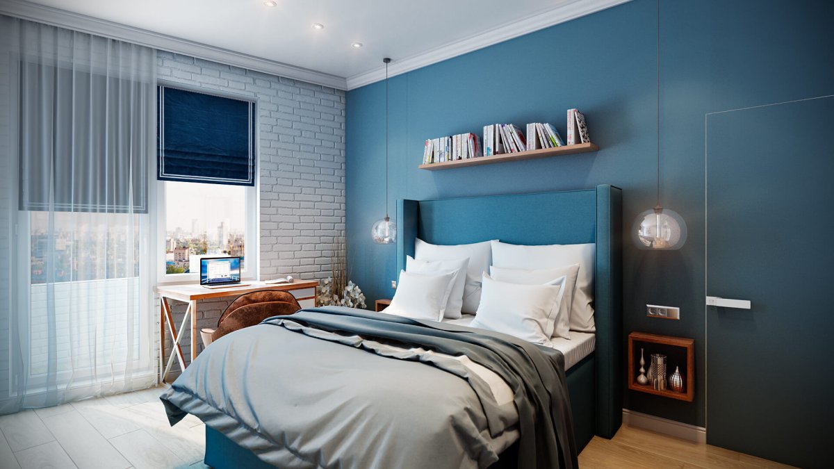 2. Спальня в голубыхттонах