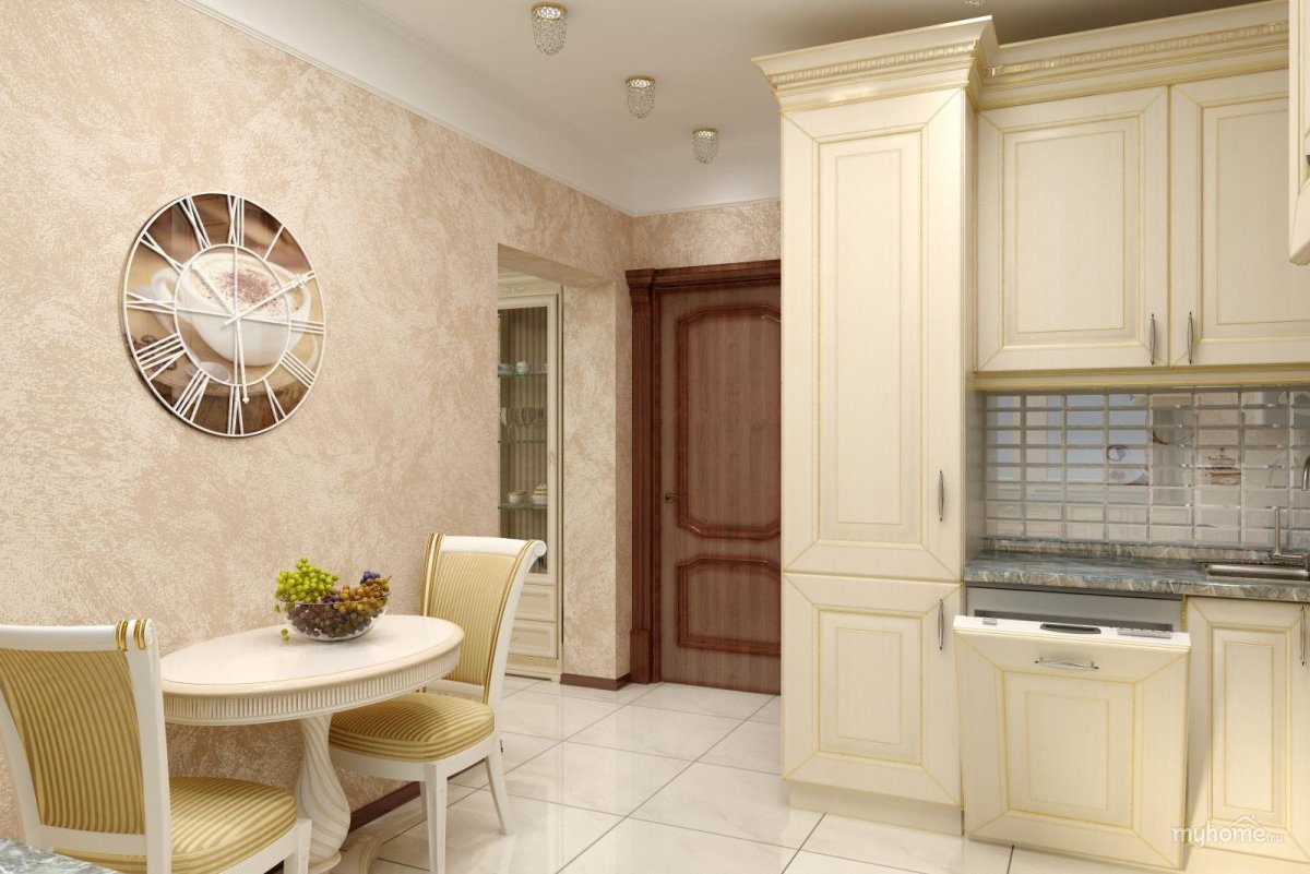 60. Бежевые стены на кухне