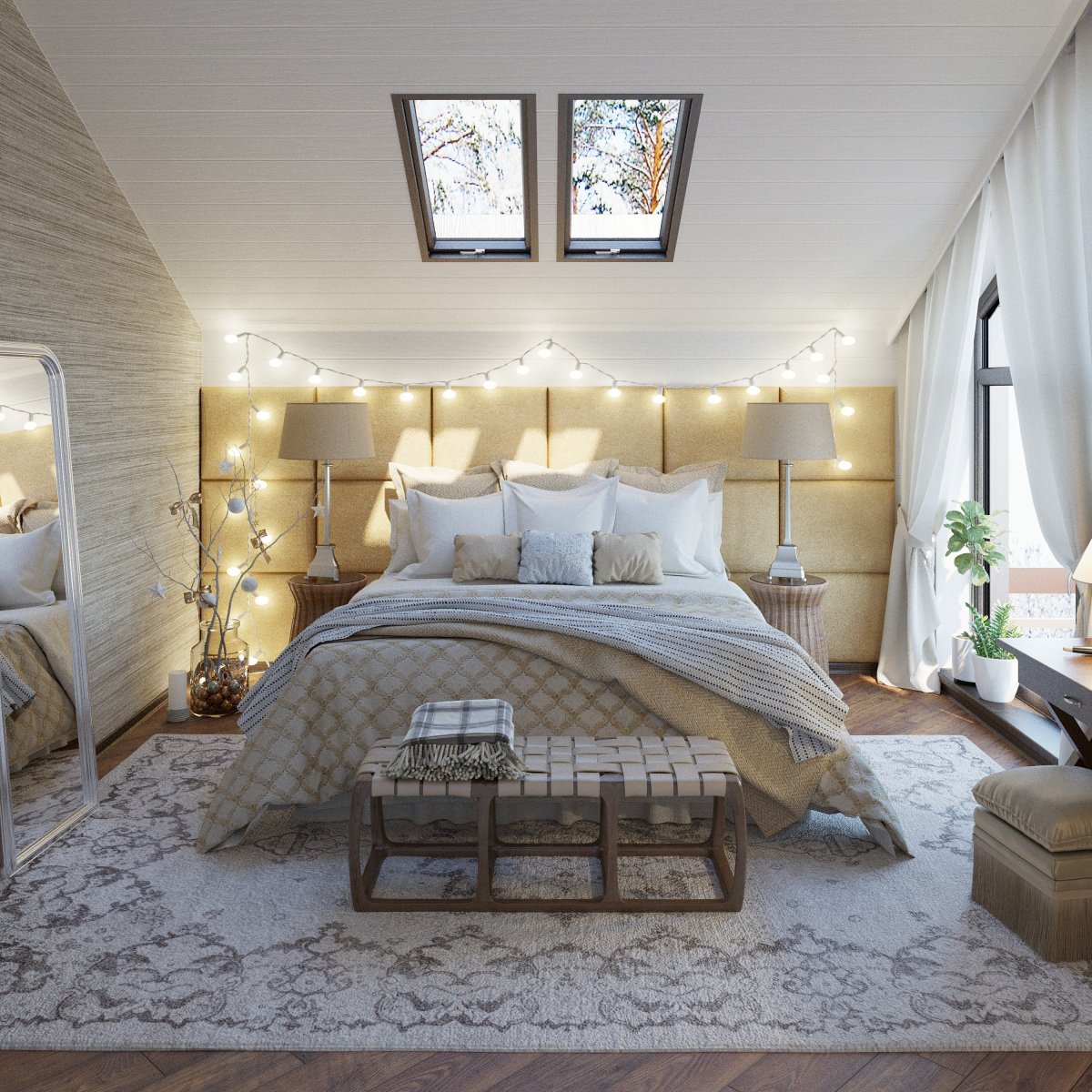 65. Спальня на мансарде