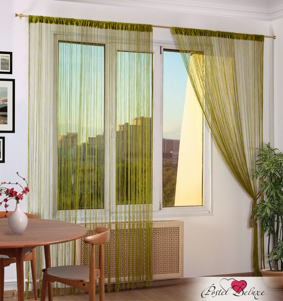 60. Нитяные шторы зеленые