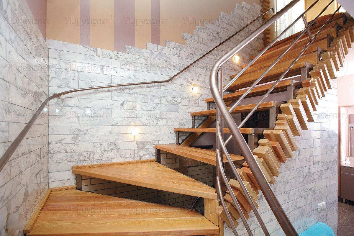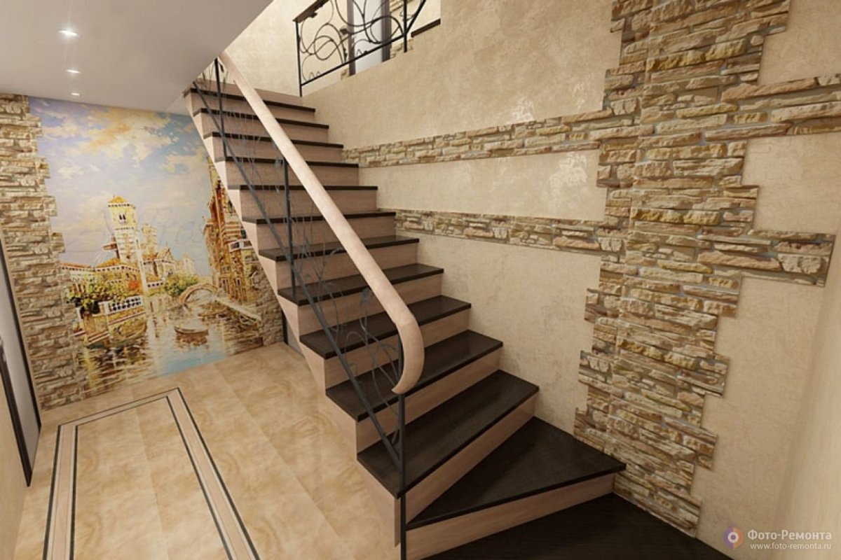 Фото: Отделка стен лестничного марша